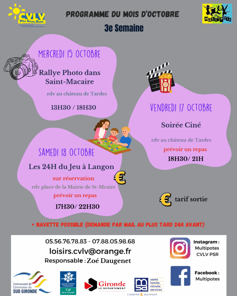 Il suffit d’envoyer un mail à loisirs.cvlv@orange.fr . Ainsi nous vous confirmerons s’il y a des places libres et donnerons le coût total de l’inscription qu’il faudra payer en amont.